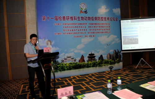 2016年4月27日-28日,由中國農業科學院哈爾濱獸醫研究所主辦,哈爾濱維科生物技術開發公司、哈爾濱國生生物科技股份有限公司協辦的第十一屆哈獸研維科生物動物疫病防控技術論壇會在??谑行呛澈郎缶频曷≈卣匍_。哈獸研副所長王笑梅研究員、湖南省農業廳李萬有總畜牧師、湖北省農科院副院長邵華斌研究員、哈獸研科研管理與國際合作處處長馮力研究員、哈維科董事長付朝陽研究員、哈爾濱國生生物科技股份有限公司董事長王云峰研究員出席了本次會議。